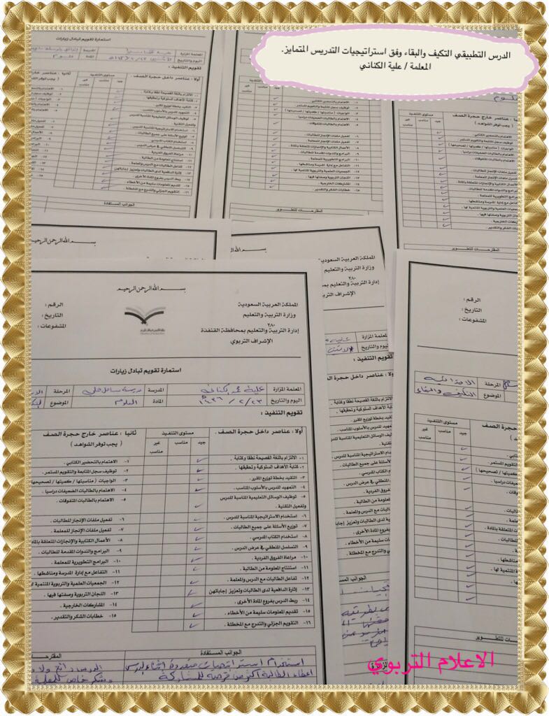 استمارة تقييم درس تطبيقي. استمارات وتقارير حضور درس تطبيقي. استمارة الترتيب الفئوي للطلاب 1439 هـ. ه تقييم واستنتاجات بالتغييرات 1 المعلم متنبه للمشاكل التي تحدث في الصف 2 يقوم المعلم بالتغييرات المناسبة في سير الدرس حسب الانعكاس. استمارة تقييم دروس تطبيقية وفق استراتيجيات التعلم.