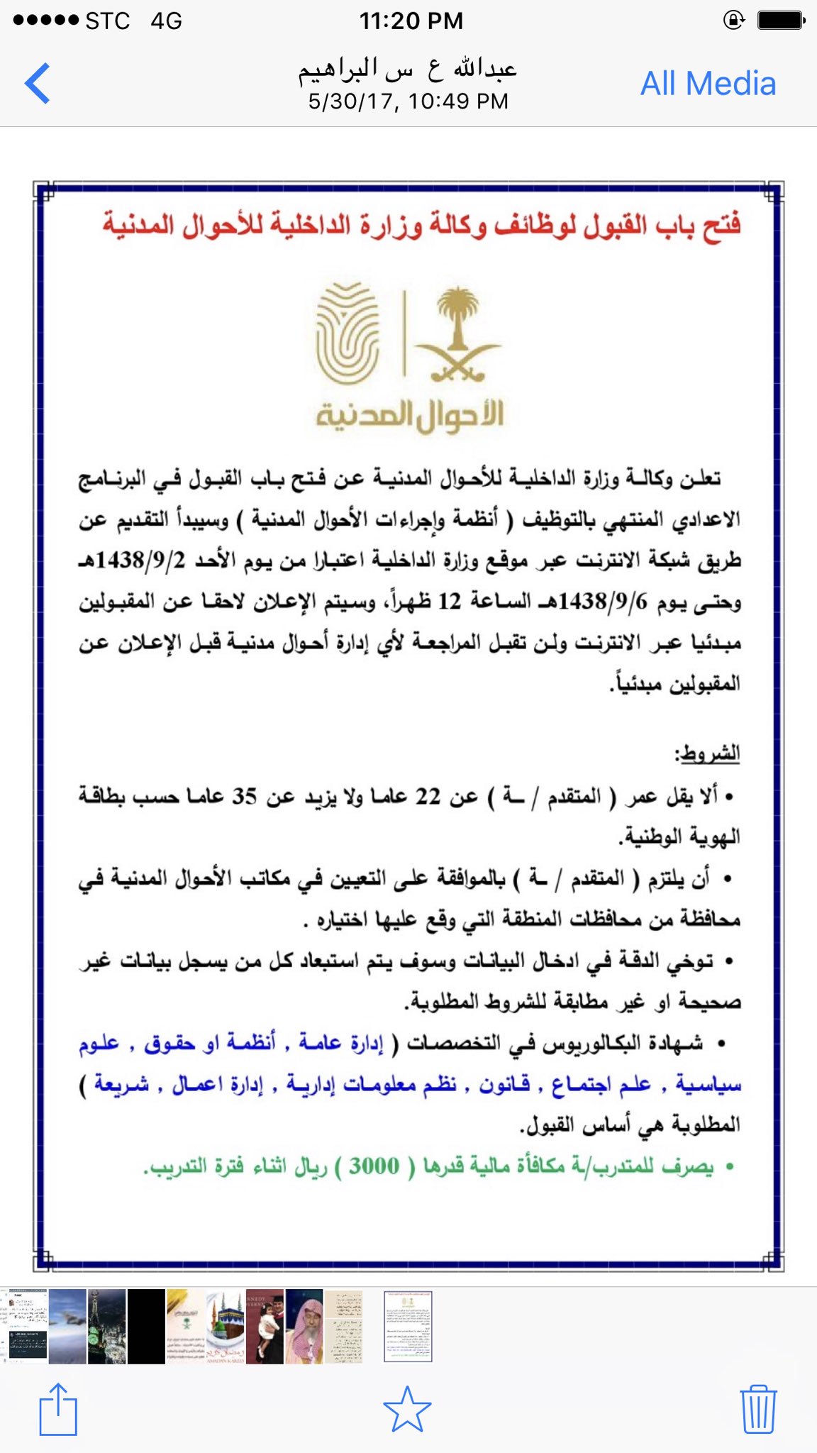 تعلن وكالة وزارة الداخلية للأحوال المدنية عن فتح باب القبول في البرنامج الاعدادي المنتهي بالتوظيف أنظمة وإجراءات الأحوال المدنية وسيبدأ التقديم عن طريق شبكة الانترنت عبر موقع وزارة الداخلية jobs moi gov sa اعتبارا من.