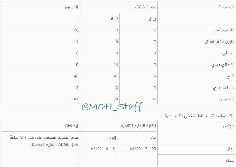 وقد تقرر وظائف صحية ضمن وظائف الخدمة المدنية 1439 في هذه الأيام للجنسين رجال نساء ووفق ما جاء بالخريطة الزمنية فقد تحدد موعدين للتقديم في الوظائف المشمولة باللائحة الصحية والمقرر بعد التقديم ظهور نتائج القبول المبدئي بتاريخ 4 11 1438 هـ ومواعيد التقديم هي. وضعت وزارة الخدمة المدنية عبر موقها الرسمي المواعيد والشروط المطلوبة للتقديم على الوظائف الصحية المشمولة بلائحة الوظائف الصحية والتي دعت الوزارة الخريجين والخريجات يوم الخميس الماضي. الأربعاء 1442 01 14 هـ الموافق 2020 09 02 م. وظائف صحية الخدمة المدنية 1439.