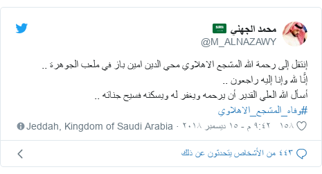 موسى الهدابي افهم ياالفهيم On Twitter انا لله وانا اليه راجعون الله يرحمه ويغفر له ويسكنه فسيح جناته ويلهم اهله وذويه الصبر والسلوان ويحعل قبره روصة من رياض الجنة يارب العالمين