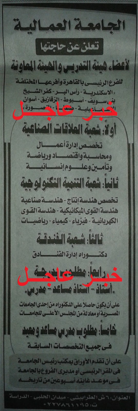الجامعة العمالية فرع الدراسة بـ القاهرة المنشورات فيسبوك