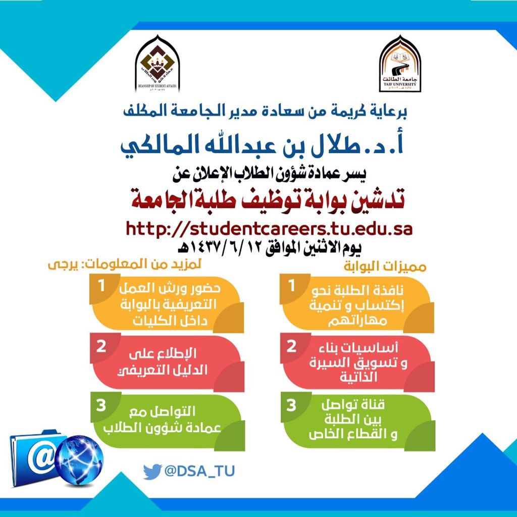 جامعة الطائف بوابة التوظيف. جميع الحقوق محفوظة جامعة الطائف عمادة التعليم الالكتروني وتقنية المعلومات قسم تطبيقات. جامعة الطائف هي من الجامعات الكبرى العريقة على مستوى المملكة حيث يتم استخدام أحدث التكنولوجيا في الوسائل التعليمية مع وجود أفضل أعضاء هيئة التدريس من أساتذة ومحاضرين ومعيدين وفنيين ذوي الاختصاصات والخبرة العالية والجامعة بدورها ترفد السوق المحلي بالكفاءآت العالية اذ. منصة الخدمات الحكومية الموحدة. أولا الوظائف الأكاديمية أستاذ أستاذ مشارك أستاذ مساعد أن يكون المتقدم سعودي الجنسية.
