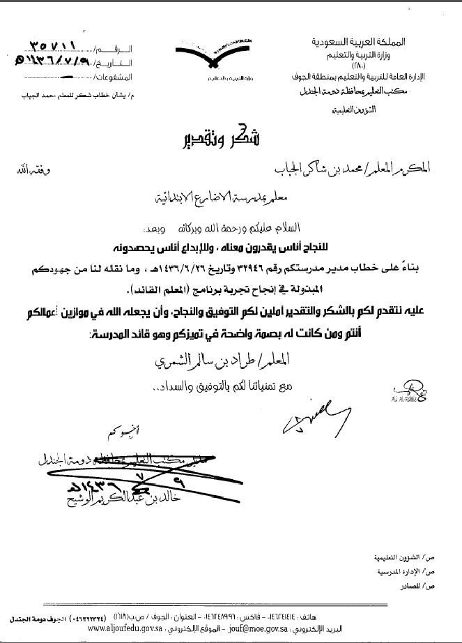 بعد التحية تتشرف ادارة مدرسة أن تكتب لكم رسالة شكر وتقدير لماتقومون به من جهود جبارة و متميزة في عملكم بهذه المدرسة ونتمنى. شعر عن المعلمة. شهادة شكر وتقدير لموظف متميز من حين إلى آخر يحتاج الموظف إلى من يقدره ويشكره على تعبه ومجهوده فى العمل ففى ذلك دعم نفسى كبير وتشجيع أكبر على العمل بصورة أكثر كفاءة فالموظف الذى يجد الشكر والتقدير من المكان الذى.