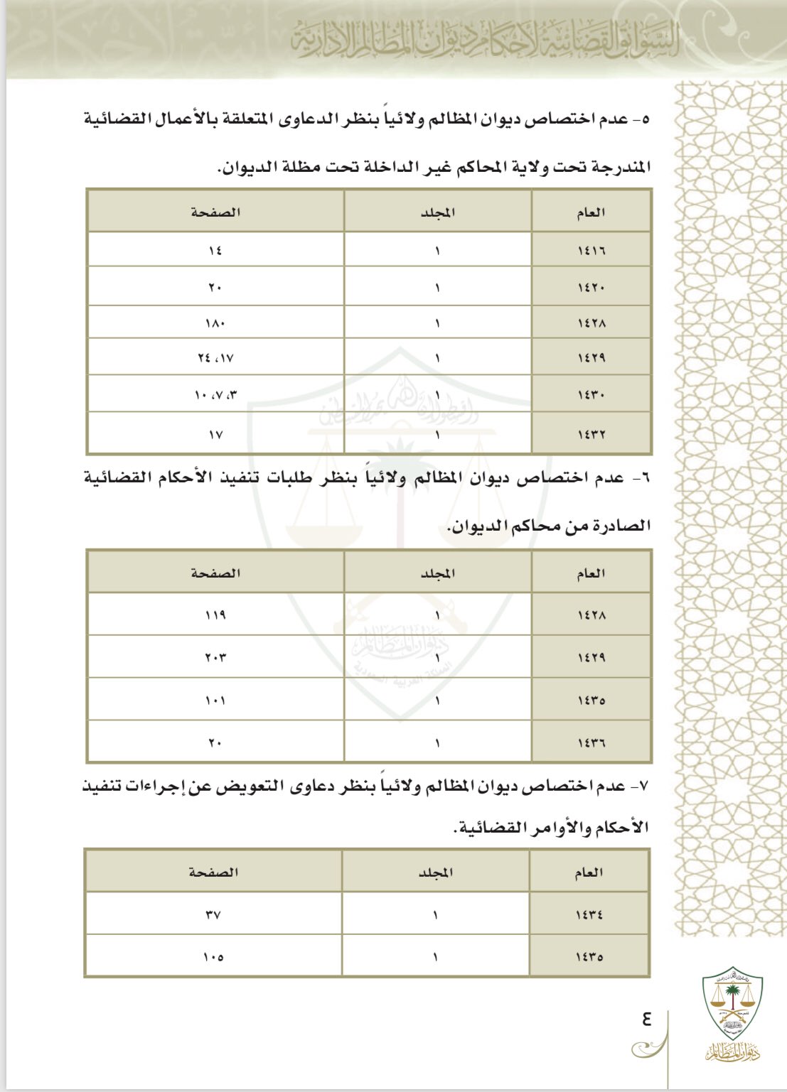 مجموعة الأحكام والمبادئ الجزائية ديوان المظالم مجموعة الأحكام والمبادئ التجارية ديوان المظالم مجموعة الاحكام القضائية الصادرة عن وزارة العدل للعام 1434. مجموعة الأحكام القضائية لعام 1435 هــ محدد حاليا آلية ومتطلبات تسجيل الملكية العقارية آخر تعديل. التسجيل في الخدمات القضائية. أنجز ديوان المظالم منجزا قضائيا معرفيا يتمثل في إصداره الأول لمدونة السوابق القضائية لأحكام ديوان.