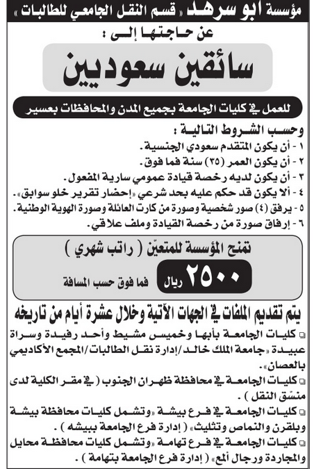 شركة ابو سرهد للتوظيف. شركة ناصر عبدالله أبو سرهد شركة سعودية 100 رائدة في تقديم كافة أنواع خدمات النقل منذ ما يزيد عن 30 عام و لذلك فإننا نحرص على أن تكون خدماتنا خاضعه لأحدث المعايير و المواصفات المطلوبة و توفير كافة سبل الراحة و الرفاهية و. اعلنت شركة رائدة في نقل الاموال وتغذية الصرافات عن وظائف في جدة مكة الباحة الطائف ينبع القنفذة المدينة المنورة تبوك مشرفي تغذية اجهزة صراف الي مشرفي خدمات عملاء الشروط. نسما شركة جذابة وجديرة بالاهتمام. وظائف حراسات أمنية بمجموعة ابو سرهد للحراسات الامنية في جدة الشروط.