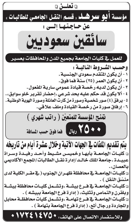 شركة ناصر عبدالله أبو سرهد شركة سعودية 100 رائدة في تقديم كافة أنواع خدمات النقل منذ ما يزيد عن 30 عام و لذلك فإننا نحرص على أن تكون خدماتنا خاضعه لأحدث المعايير و المواصفات المطلوبة و توفير كافة سبل الراحة و الرفاهية و. الشركة العالمية لإلحاق العمالة المصرية بالخارج ترخيص 77 شركات. ٤١ ألف تسجيل إعجاب. من مقيمى مدينة جدة الالتزام بمواعيد العمل المؤهل الدراسى غير هام المميزات.