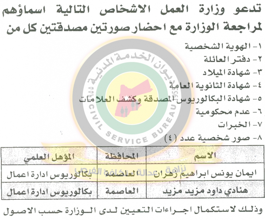 مدعوون لمراجعة وزارة العمل لاستكمال اجراءات التعيين بيتنا للوظائف
