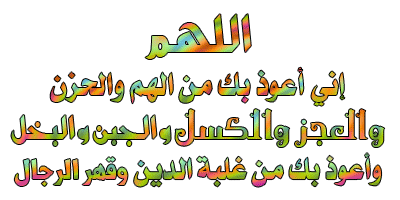 اللهم إني أعوذ بك من الهم و الحزن و أعوذ بك من العجز و الكسل و أعوذ بك من الجبن و البخل و أعوذ بك من غلبه الدين و قهر