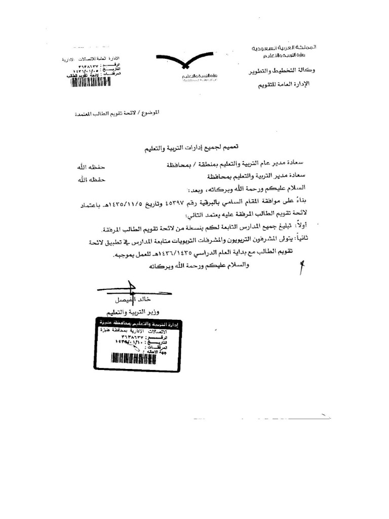 لائحة تقويم الطالب 1435. لائحة تقويم الطالب و المذكرة التفسيرية 1439 هـ. تعميم تعديل لائحة تقويم الطالب 1441 هـ 2020 م للتحميل المباشر المجاني لكل من يرغب في الحصول عليها بسهولة ويسر لكل من يعمل في مجال التعليم. وتأتي أهم الفروقات بين لائحة تقويم الطالب الصادرة عام 1426هـ واللائحة الجديدة في إدراج معايير عامة في تقويم الطالب واعتبار نقل الطالب إلى الصف. A l e l ào ž3 l 33 4 4 1 4.