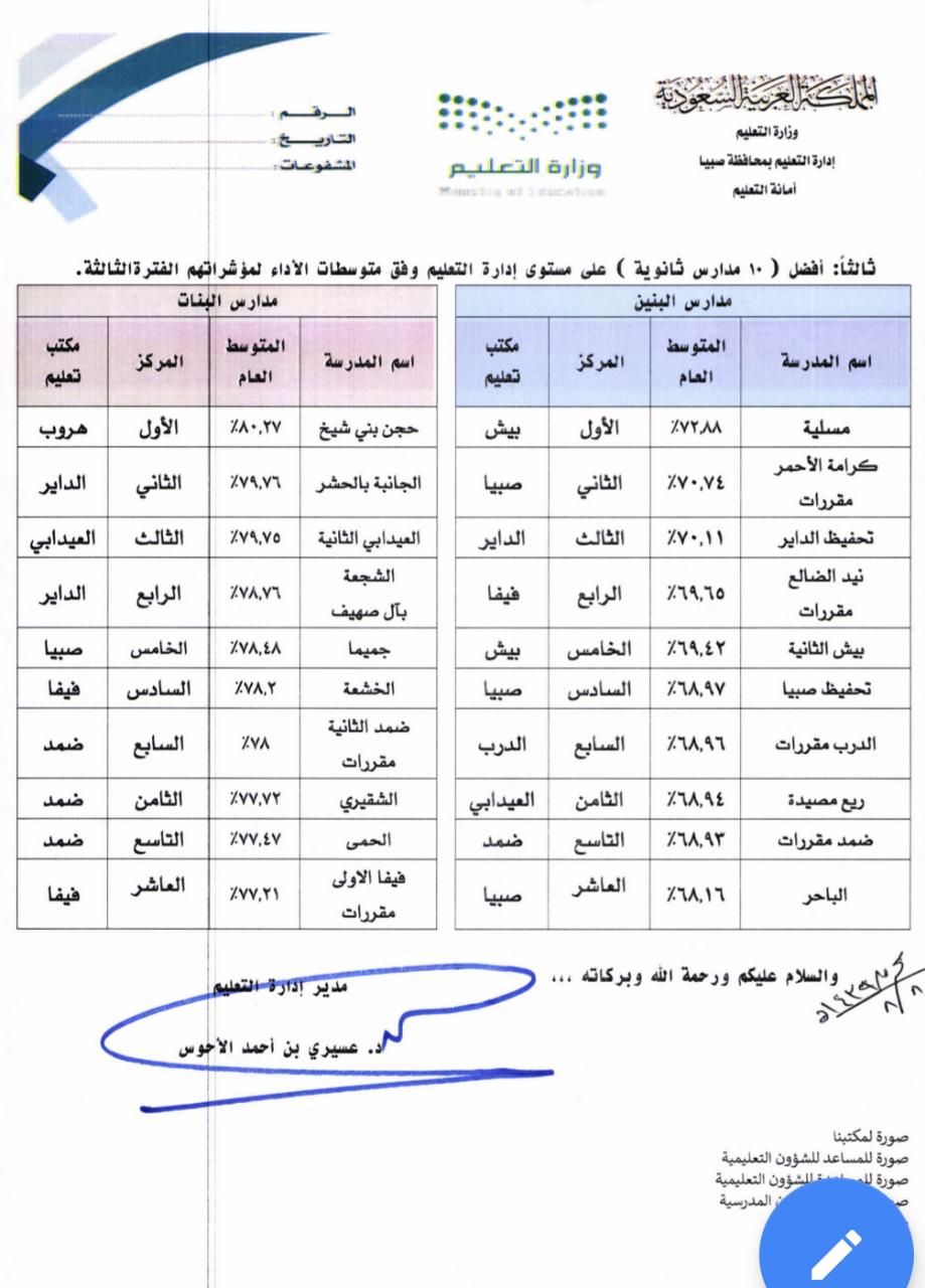 مؤشرات الاداء المدرسي صبيا