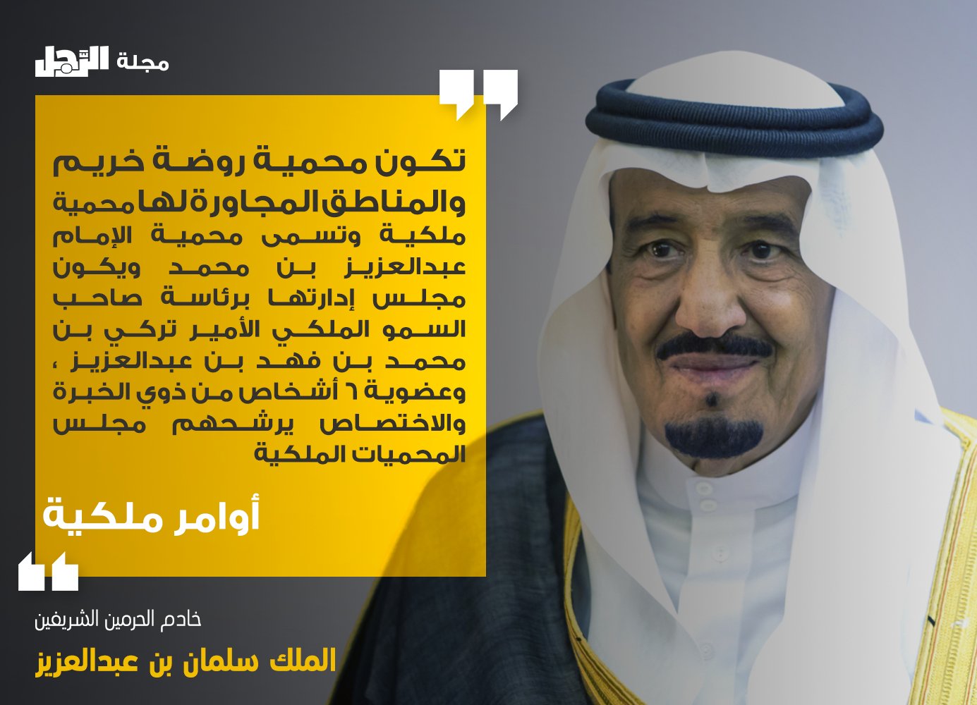 تكون محمية روضة خريم والمناطق المجاورة لها محمية ملكية وتسمى محمية الإمام عبدالعزيز بن محمد ويكون مجلس إدارتها برئاسة الأمير تركي بن محمد بن فهد بن.