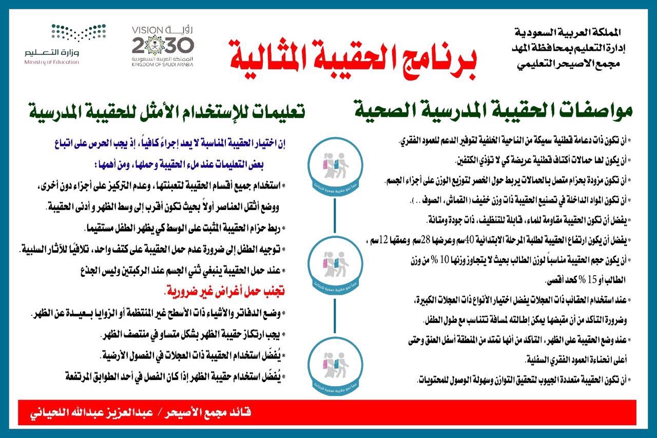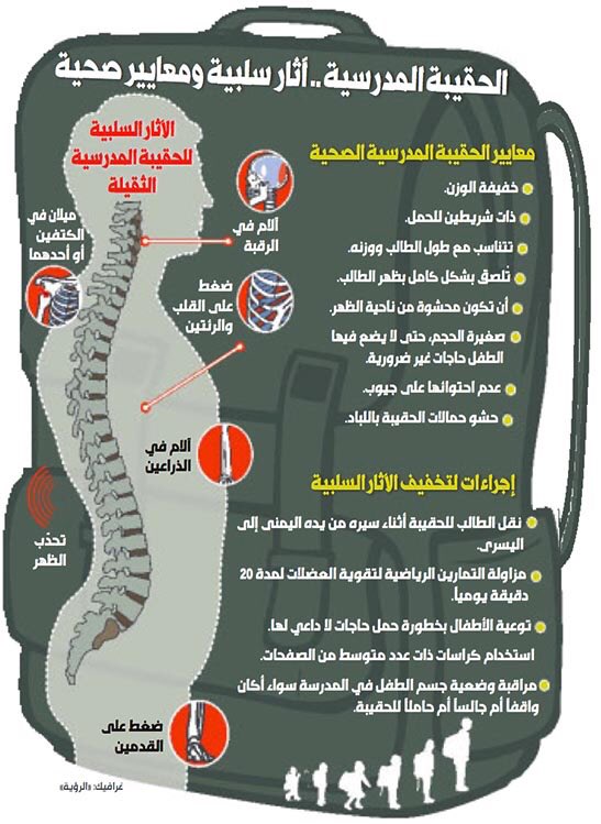 مطوية عن الحقيبة المدرسية توضح كل شيء بدءا من ماهية الحقيبة المدرسية وكيفية اختيار الحقيبة على أساس السن والوزن ونصائح عليك معرفتها للمحافظة على سلامة طفلك وللتخفيف من عبء الحقيبة المدرسية عليه سنتعرف على المزيد. مطويات عن حقيبتي المثالية إنشر على. مطويات عن حقيبتي المثالية. أن تكون الحقيبة المدرسية ذات دعامة قطنية سميكة من الناحية الخلفية وذلك لتوفير الدعم للعمود الفقري ليتوزع الثقل على منطقتي الظهر والحوض مما يحقق توازنا أفضل للجسم أثناء حمل.