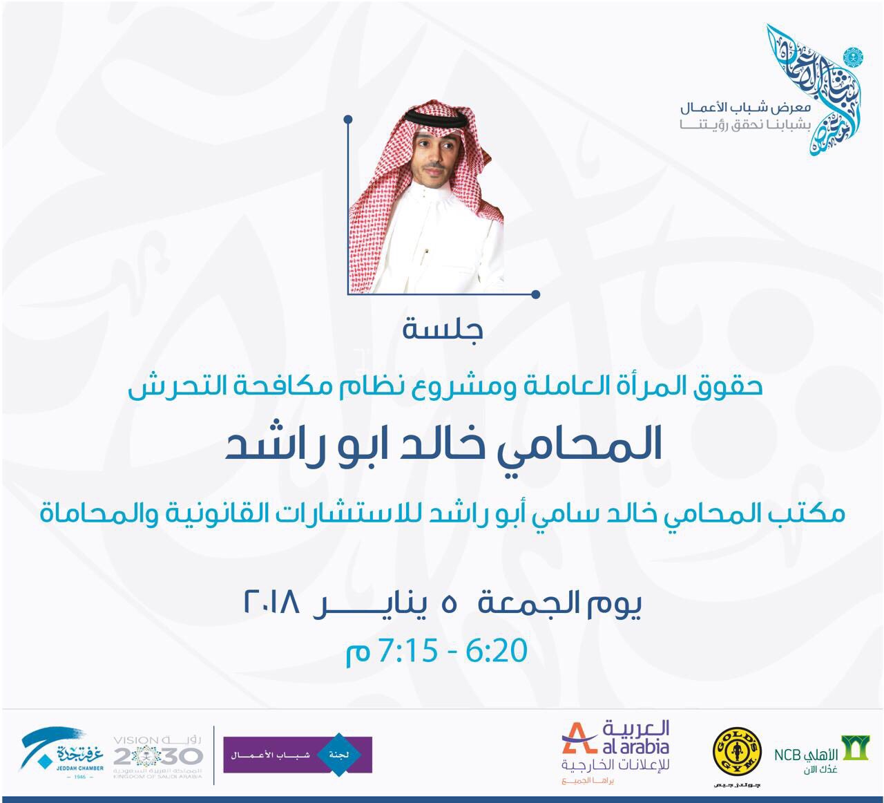 ثامر الفرشوطي على تويتر المحامي خالد أبو راشد يقدم جلسة بعنوان حقوق المرأة العاملة ومشروع نظام مكافحة التحرش اليوم الجمعة الساعة 6 20 مساء في معرض شباب أعمال جدة جدة Https T Co Ihykgwsiqd